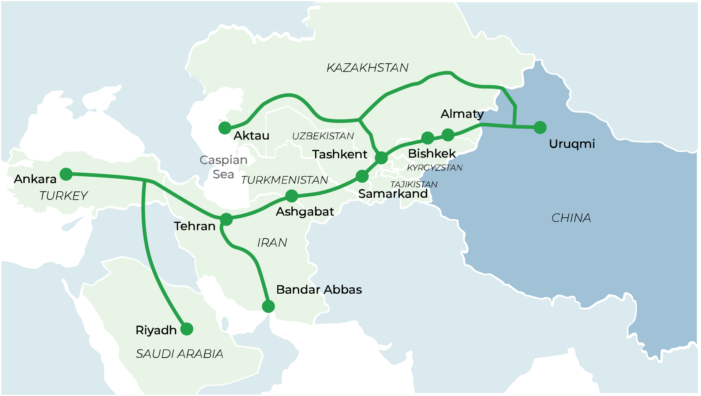By linking railway networks from China to the Mediterranean Sea, this economic corridor enhances the connectivity between China, Kazakhstan, Kyrgyzstan, Uzbekistan, Tajikistan, Turkmenistan, Iran and Turkey. In addition to investing in rail, China is also developing roads and other infrastructure projects that could transform the economies of Central Asia, which only have limited trade relations at present.