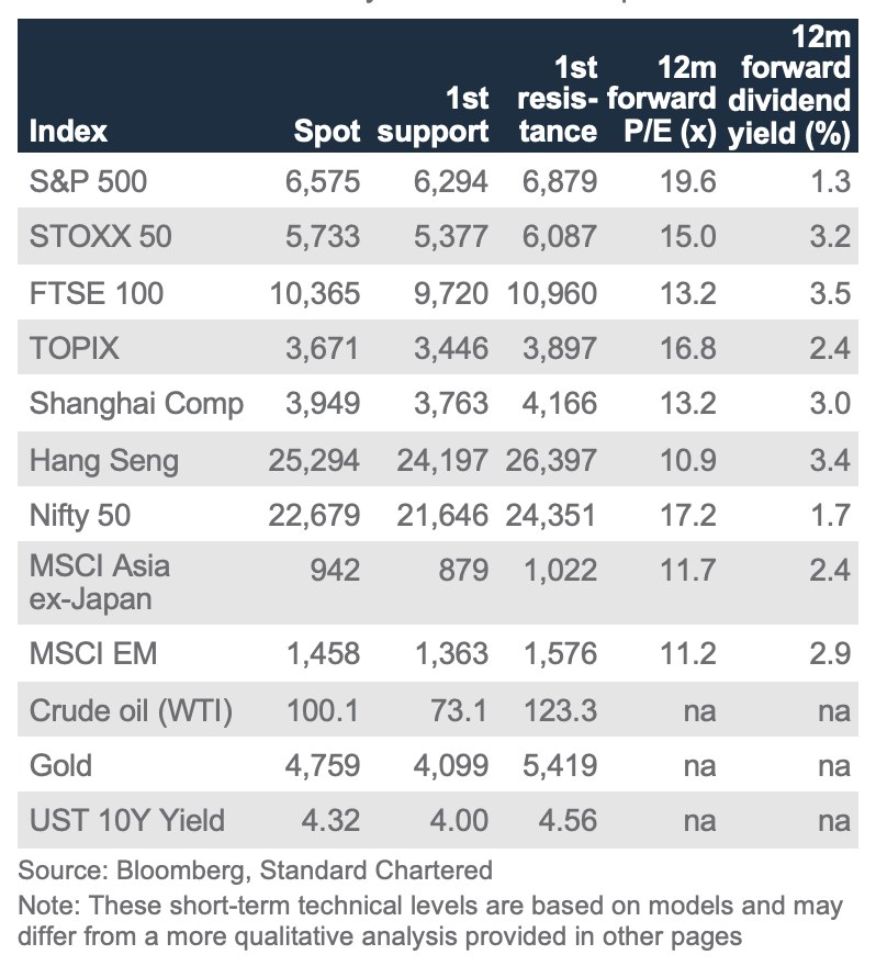Demand for ‘high moats’: Amid heightened uncertainty, we prefer technology and utilities sectors that feature a concentration of high-quality stocks with strong margins and earnings. The US technology sector, in particular, offers attractive valuations. The recent market downturn has reduced the sector’s forward price/earnings (P/E) premium to the S&P 500 index to below 5%, its lowest since January 2019 and down from a 35% premium in October 2025. Historical data shows that when the premium falls within the 4–6% range, returns over the next 3, 6, and 12 months have averaged 5%, 13%, and 19.7% respectively. The upcoming US Q2 corporate earnings season may support a recovery, especially if Middle East