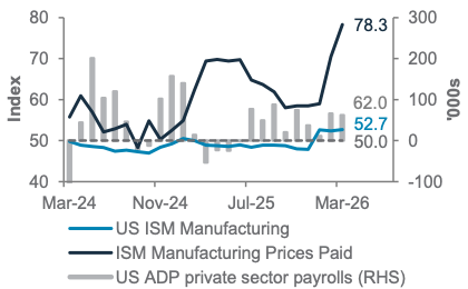 Our view: Given our base-case view of a relatively short period of high oil prices, we expect the ECB to keep rates unchanged but hold a hawkish bias. We see the Fed resuming policy rate cuts in H2 2026 as it refocuses on labour-market weakness.