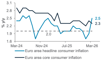Euro area headline inflation accelerated to 2.5% y/y in March, driven by a sharp rise in energy prices