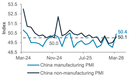Meanwhile, in the US, Fed Chair Powell’s 30 March remarks at Harvard noted that the Fed is in a “good place” to “wait and see” how the Iran crisis affects the economy and inflation. He said that policymakers can “look through” temporary oil‑price shocks. This reinforces our view that the Fed will remain on hold in H1 2026, despite inflation remaining above target. We expect the Fed to resume policy rate cuts in H2 2026 as the Middle East conflict de‑escalates and attention shifts back to labour‑market weakness.