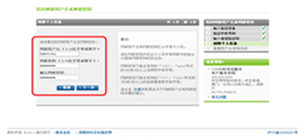 重新设置您的网银用户名及密码后,点击“下一步”。