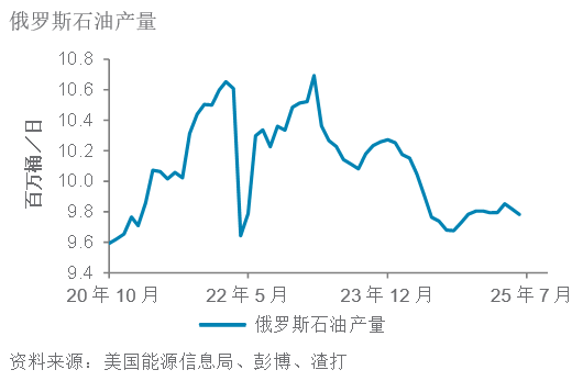 图. 21 尽管受到制裁,但俄罗斯石油产量仍维持在相对窄幅区间内