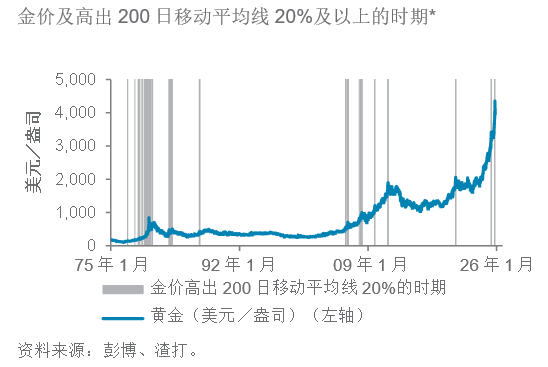 图. 19 金价已升至历史上通常预示回调的水平