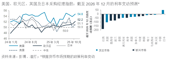 在金融状况放宽下,大多数发达市场的商业信心保持韧性。随着就业市场放缓,美国在发达市场中率先减息;而巴西料在新兴市场中率先减息。