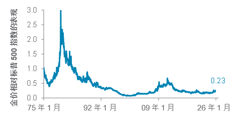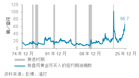 a) 相对价值方面:以经通胀调整后的金价来衡量,现时金价略高于1970年代滞胀时期的高位。图7显示,黄金在危机时期展现其真正价值 —— 例如1970年代滞胀、2007至2008年全球金融危机、2020年新冠疫情,以及近期由俄乌冲突及特朗普2.0引发的地缘政治冲击。然而,图10显示黄金目前估值较原油昂贵。综合而言,上述相对价值评估显示,只要全球政策不确定性仍然高企,黄金的价值有望得到支持。