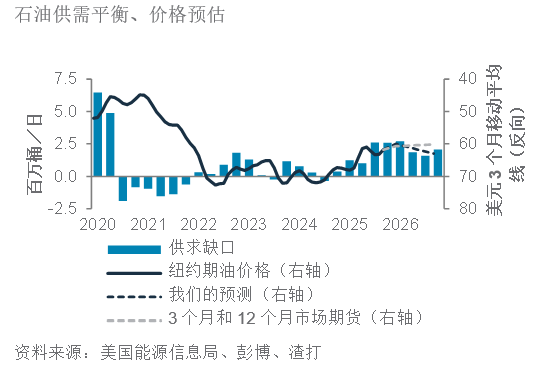 我们预期在未来3个月及12个月,纽约期油价格将分别维持在每桶约60美元及63美元水平。供应过剩仍为主导因素,预期将限制由潜在地缘政治风险引发的短暂油价反弹。