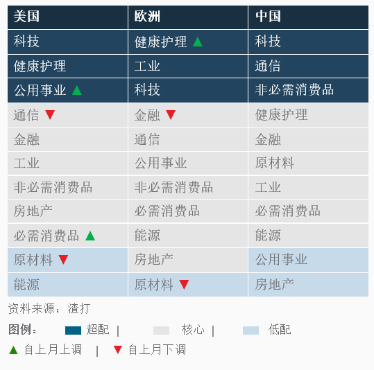 - 美国:科技、通信服务、健康护理