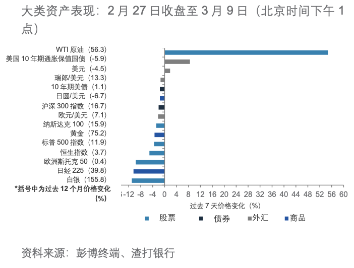 下一步关注:除中东局势与油价曲线形态外,定于本周三公布的美国2月份消费者通胀数据将是关键焦点。市场预计,通胀在冲突爆发前保持稳定(预期共识:核心通胀环比上涨0.2%,同比上涨2.5%)。若通胀与通胀预期高于预期,则美联储可能进一步推迟降息,短期内滞胀忧虑也会加剧。