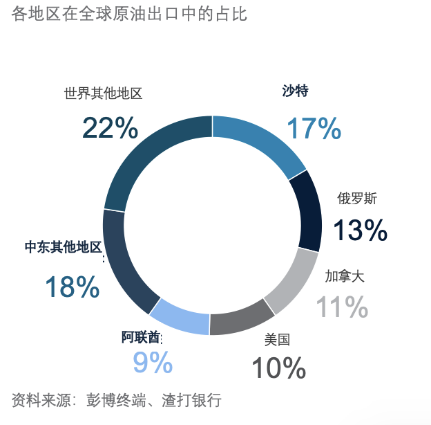 海湾国家占全球原油出口的三分之一以上