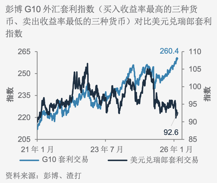 此外,美元兑瑞郎跌穿关键支持位,使仅以瑞郎为融资货币的套利交易受压。我们认为,瑞郎进一步升值可能拖累此类策略的表现。