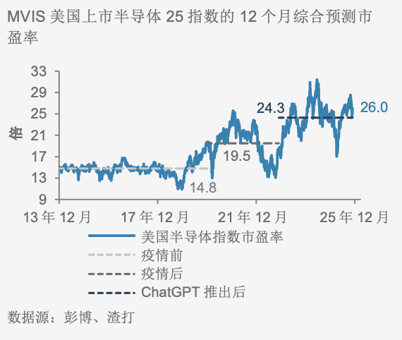 美国半导体行业的估值已被上调,先从新冠疫情前到疫情后,再到ChatGPT推出后