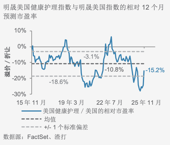 美国健康护理行业虽然近期表现强劲,但仍较美国整体市场有15.2%的折让