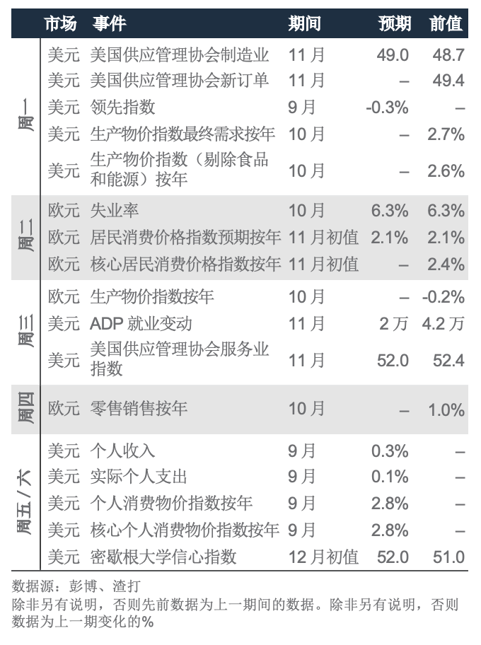 美国11月制造业采购经理指数的跌幅超过预期,而服务业采购经理指数则有所改善