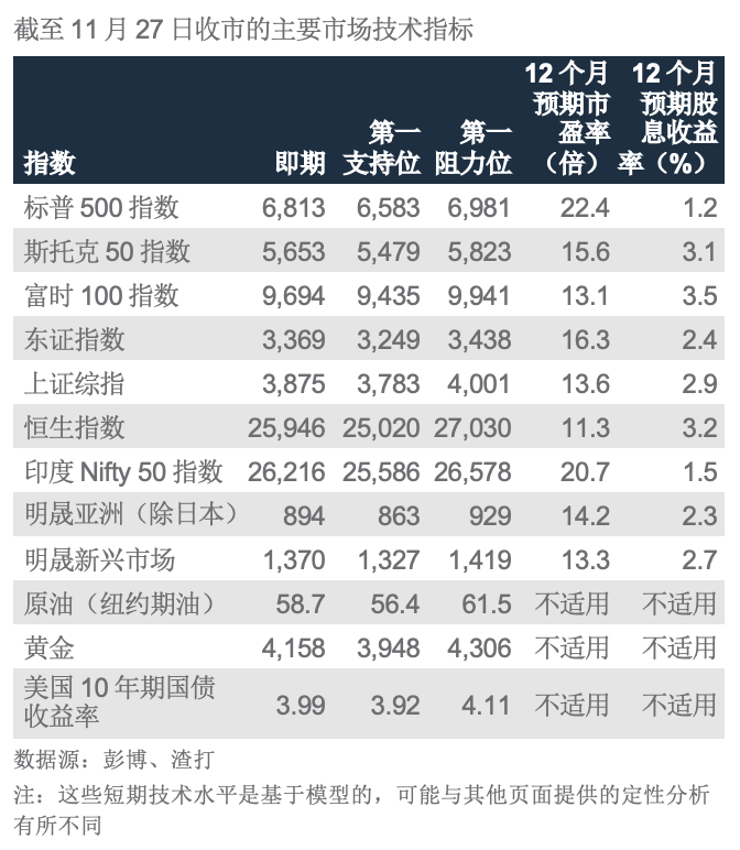 威廉斯重燃市场对美联储12月减息的押注:纽约渣打银行 新加坡联邦储备银行行长威廉斯表示,就业市场放缓和通胀风险缓和,美联储需要在12月份再次减息。威廉斯的言论使意见严重分歧的美联储的政策方向倾向一边(见上表),将市场对12月减息的预期从上周约30%推高至80%以上。上周市场对减息的预期降温,原因是近期政府停摆导致经济数据不足,以及关税可能带来通胀风险,以致多位美联储决策者呼吁谨慎行事。