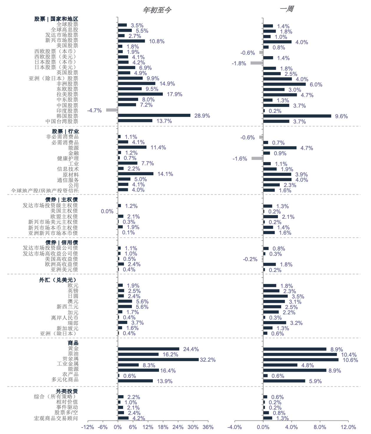 *除非另外说明,否则所有表现均以美元计价。“2026年初至今”指2025年12月31日到2026年1月29日的表现,“过去一周” 指2026年1月22日至2026年1月29日的表现