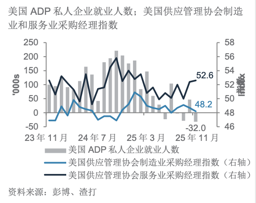 美国11月私人企业就业人数收缩,为自2023年初以来最大跌幅;受关税不利因素影响,制造业持续萎缩