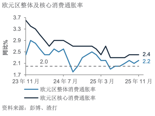 欧元区整体通胀率在11月轻微上升,而核心通胀率则维持不变,符合预期