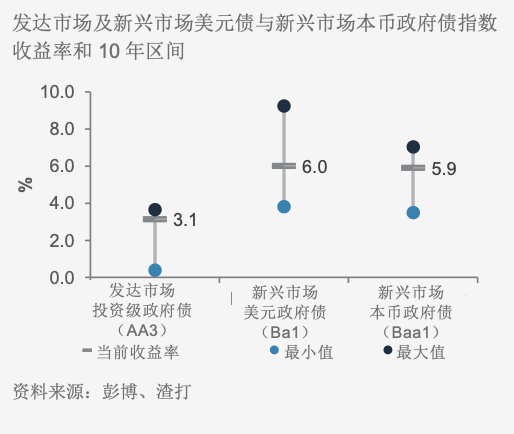 新兴市场本币与美元政府债的名义收益率较发达市场债吸引