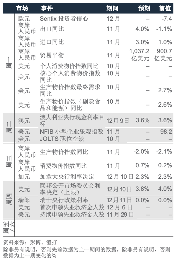 美联储下周或减息;转为看涨欧元:尽管首次申领失业救济金人数减少,但招聘速度放缓仍然令人忧虑,这一点从私人企业就业缩减(ADP数据)和多项就业指标(美国供应管理协会的数据)收缩进一步得到印证,从而提高了下周再次减息25个基点的几率。市场焦点将转向美联储修订后的利率预测和决策者立埸分化的程度。我们预计随着美联储明年减息,而欧洲央行则维持利率不变,在利差不断扩大下,或推动欧元兑美元升至1.18(见第5页)。