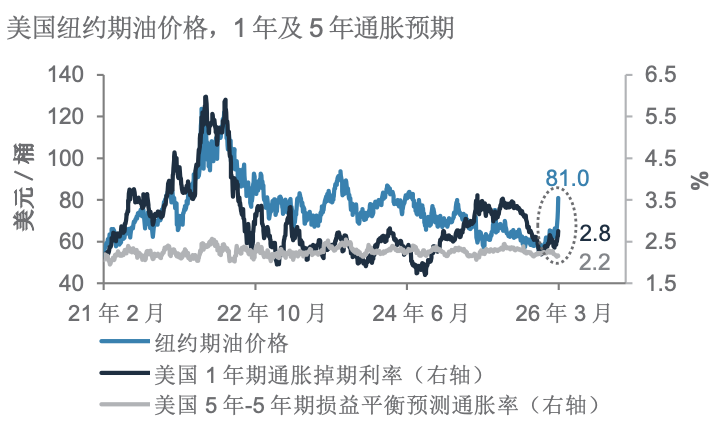 我们认为伊朗冲突仅持续数周的概率为70%,持续数月的概率为30%。 截止目前对市场的影响有限。油价作为影响资产价格的主要传导管道,已升穿去年以伊为期12天冲突期间的水平,但仍远低于俄乌冲突触及的水平。