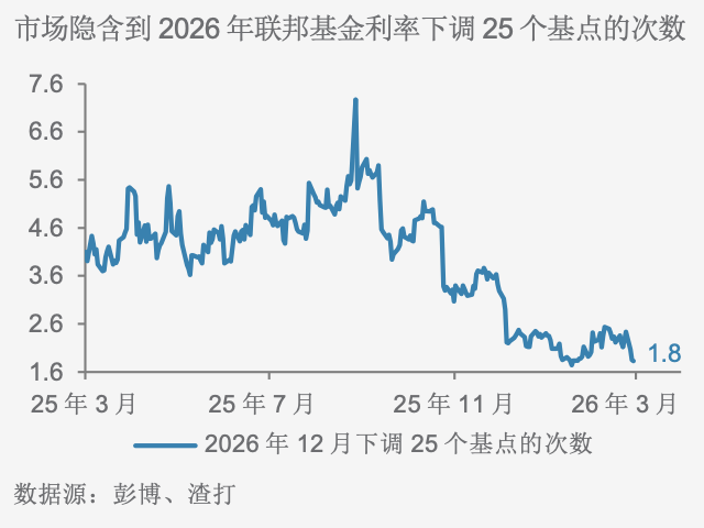 市场对2026年年内美联储减息少于我们预期三次(每次25个基点)的风险正在上升