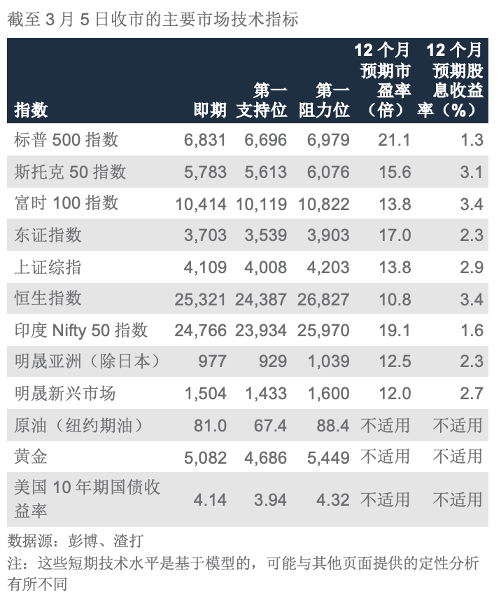 理据:尽管中国和印度股票年初至今表现逊于整体亚洲(除日本)地区,但我们在未来6至12个月仍对这些市场持积极观点。在中国市场,我们预计互联网与科技行业将展现稳健的盈利势头,同时持续推行对股东有利的措施,包括增加股息与股份回购。我们认为中国会推出有利的政策支持措施,因中国将2026年经济增长目标设定为4.5-5.0%(参见我们关于2026年中国全国人民代表大会要点的《市场焦点》)。鼓励将家庭储蓄投入股票市场的渐进式改革也可能成为利好因素。