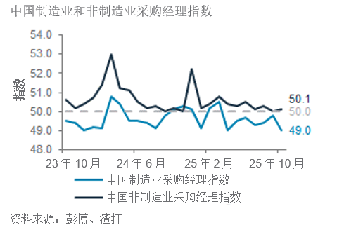 中国制造业采购经理指数10月下降;非制造业采购经理指数上升