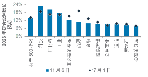 美国2026年综合盈利预期(11月6日对比7月1日)