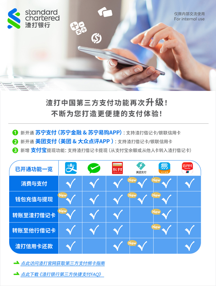 渣打中国第三方支付功能再次升级!不断为您打造更便捷的支付体验!