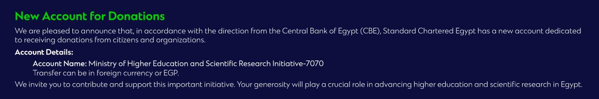 Standard Chartered’s presence in Egypt is a core part of Standard Chartered Group’s strategic footprint in the Middle East region, combining international expertise and capabilities with deep-rooted local knowledge.