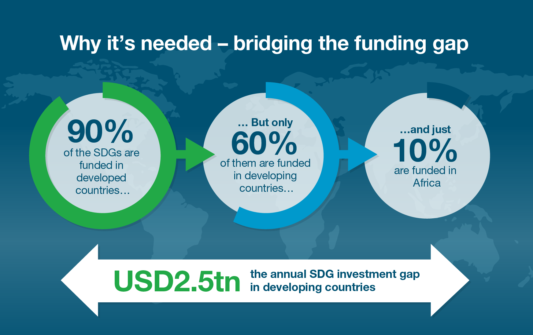 The UN estimates that developing countries – some of the markets facing the toughest environmental and social challenges – need USD2.5 trillion a year to achieve the SDGs.