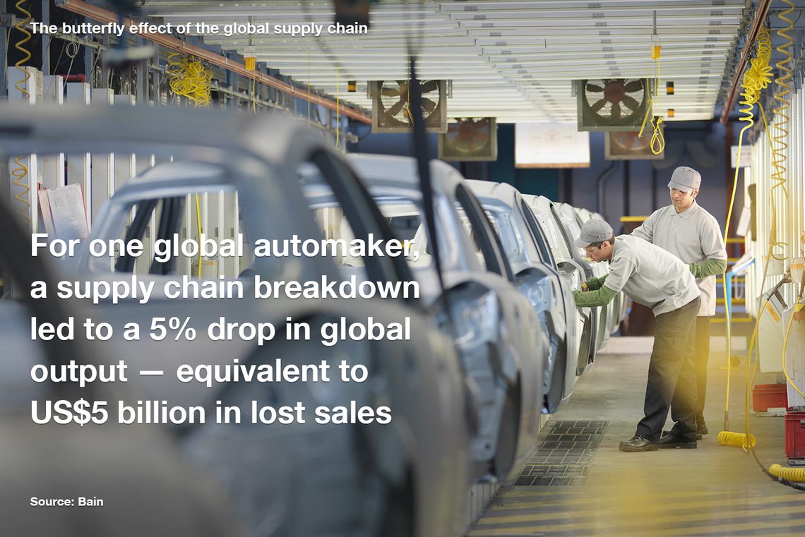 You’ve probably heard of the term ‘the butterfly effect’. It was proposed by American meteorologist Edward N. Lorenz who theorised that a butterfly gently flapping its wings in Brazil can set off a chain of events that eventually cause a hurricane halfway across the world in Texas. Global supply chains are similarly interlinked. Their complexity and interdependency mean that one small change can snowball into momentous impact.