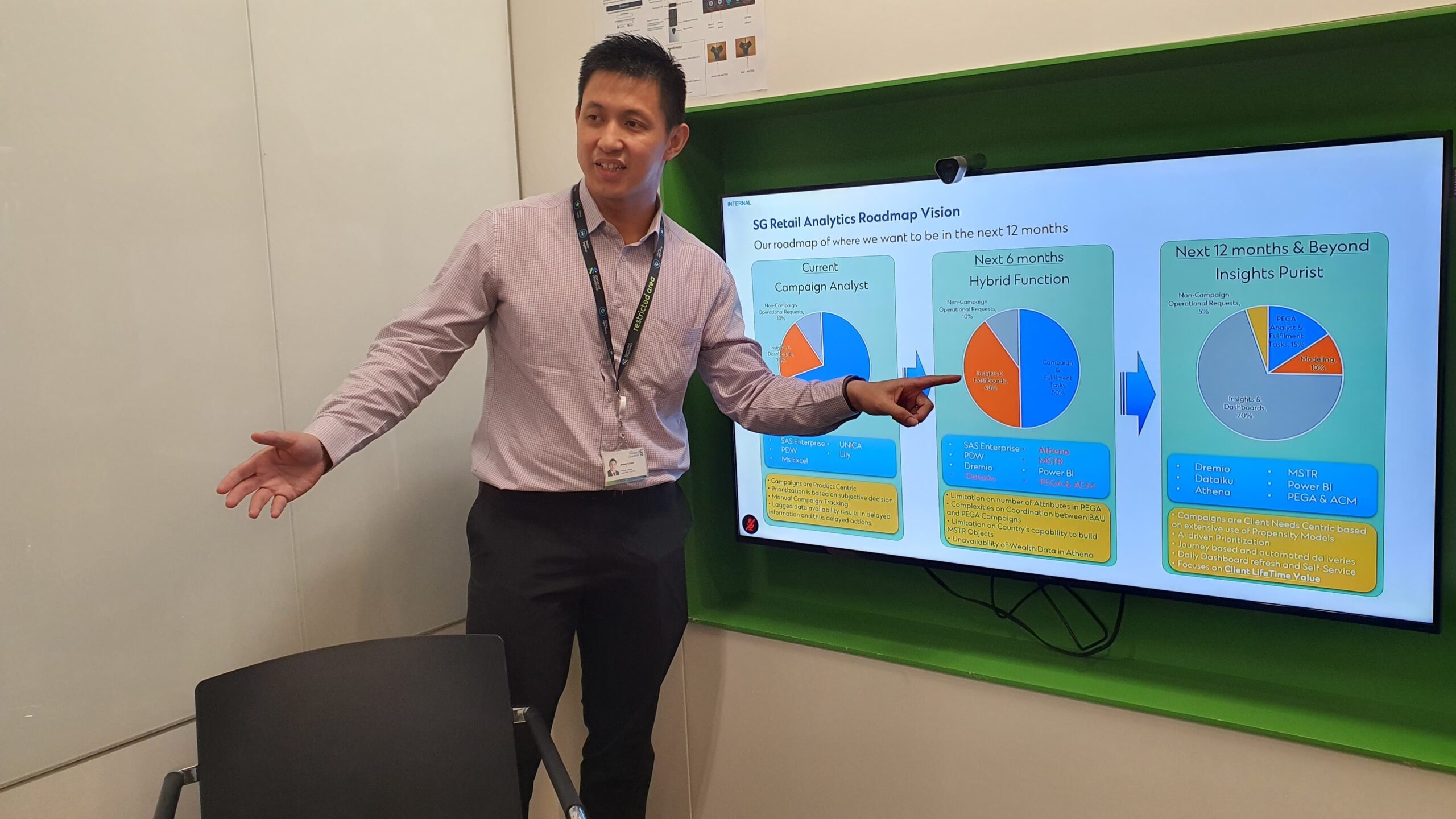 On a typical day, we are very busy extracting data for campaign leads or insights. We are also heavily involved in discussions with stakeholders to understand requirements, seek clarifications and make adjustments on the data strategy. We also spend quite a lot of time on dashboards and presentation deck preparations.