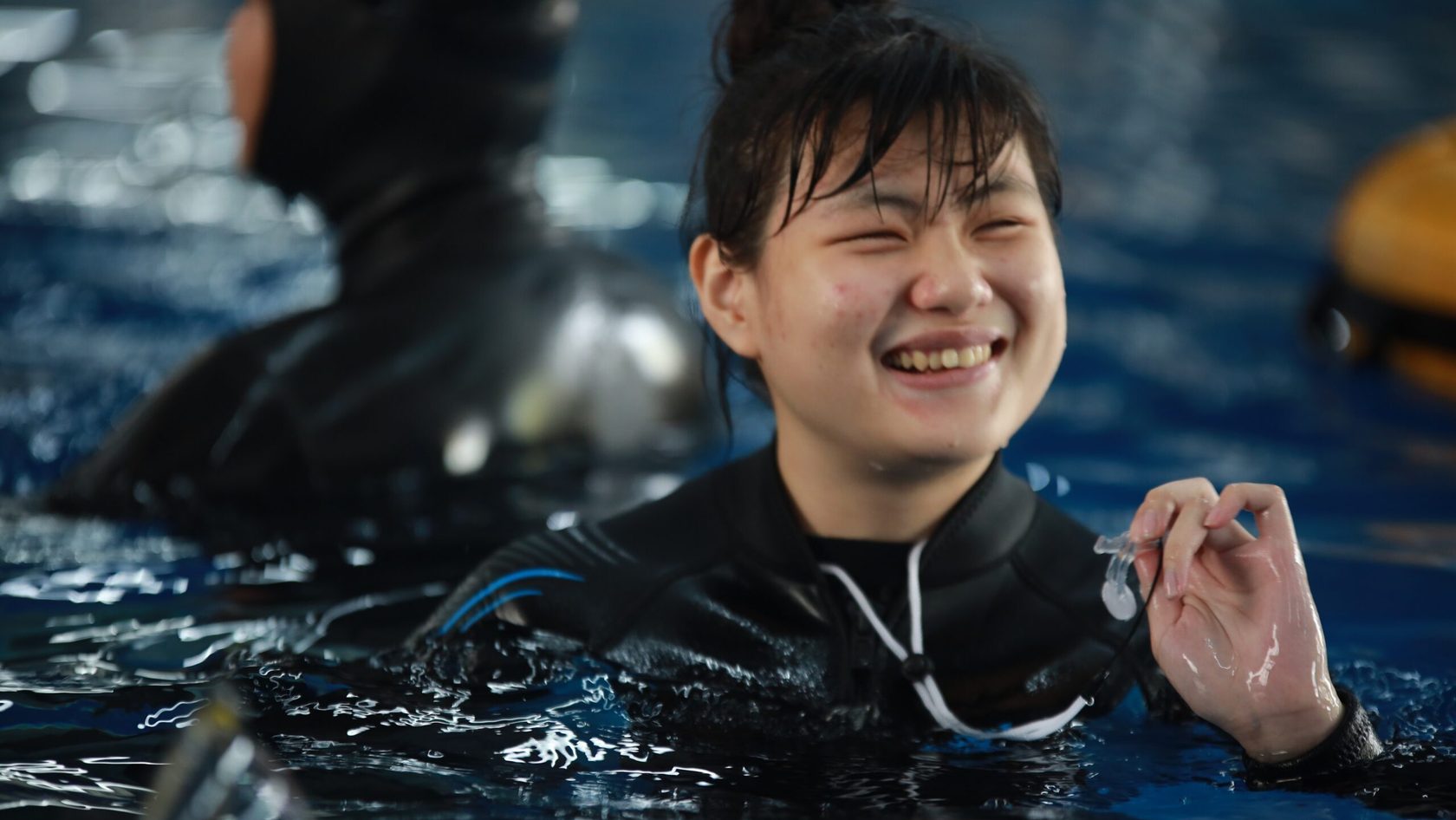 Small Wolf has since passed a diving exam and practises coaching and saving people underwater. Her next goal is to obtain a free-diver certificate to dive in the sea. She wants to show people who think diving in the ocean is meaningless for the visually impaired, because they can’t see, that they are wrong.