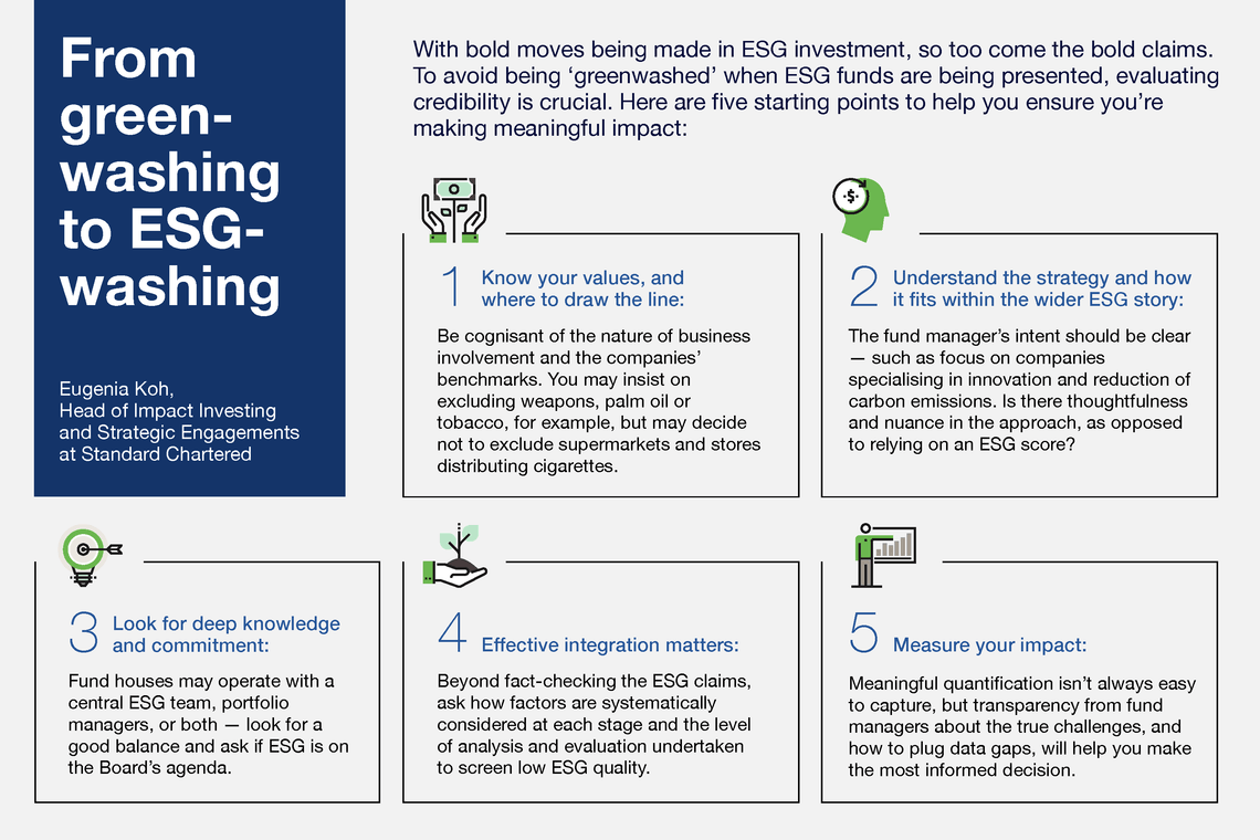 Naturally, all investments carry risks but it’s not just about what’s in immediate view. As Standard Chartered’s Calla added, “Investors are increasingly looking at the longer-term forces such as climate risk and sustainable development and their impact on future investment returns.”