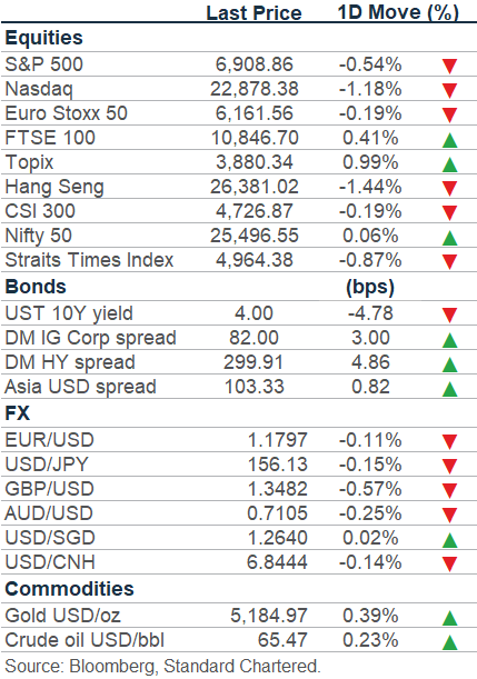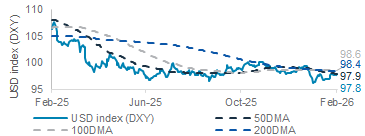 Resilient jobs data buoys USD; producer inflation in focus: The USD edged higher on Thursday after initial jobless claims rose by less-than-expected last week, while continuing claims for the week of 14 February declined following a downward revision to prior data. This reinforced signs of labour market resilience and subdued layoffs. The US 10-year government bond yield fell 5bps to 4.0% after the release. Attention now turns to producer inflation data due tonight, with consensus expecting a modest decline in the headline figure. Any upside surprise could see the USD index (DXY) test its 50-day moving average at 97.9.