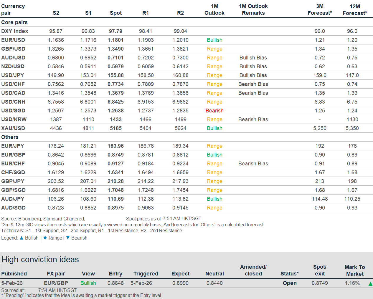 Banking activities may be carried out internationally by different branches, subsidiaries and affiliates within the Standard Chartered Group according to local regulatory requirements. Opinions may contain outright “buy”, “sell”, “hold” or other opinions. The time horizon of this opinion is dependent on prevailing market conditions and there is no planned frequency for updates to the opinion. This opinion is not independent of Standard Chartered Group’s trading strategies or positions. Standard Chartered Group and/or its affiliates or its respective officers, directors, employee benefit programmes or employees, including persons involved in the preparation or issuance of this document may at any time, to the extent permitted by applicable law and/or regulation, be long or short any securities or financial instruments referred to in this document or have material interest in any such securities or related investments. Therefore, it is possible, and you should assume, that Standard Chartered Group has a material interest in one or more of the financial instruments mentioned herein. Please refer to our Standard Chartered website under Regulatory disclosures for more detailed disclosures, including past opinions/ recommendations in the last 12 months and conflict of interests, as well as disclaimers. A covering strategist may have a financial interest in the debt or equity securities of this company/issuer. All covering strategist are licensed to provide investment recommendations under Monetary Authority of Singapore or Hong Kong Monetary Authority. This document must not be forwarded or otherwise made available to any other person without the express written consent of Standard Chartered Group.