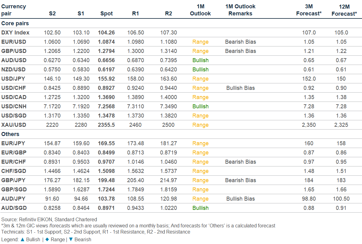 Banking activities may be carried out internationally by different branches, subsidiaries and affiliates within the Standard Chartered Group according to local regulatory requirements. Opinions may contain outright “buy”, “sell”, “hold” or other opinions. The time horizon of this opinion is dependent on prevailing market conditions and there is no planned frequency for updates to the opinion. This opinion is not independent of Standard Chartered Group’s trading strategies or positions. Standard Chartered Group and/or its affiliates or its respective officers, directors, employee benefit programmes or employees, including persons involved in the preparation or issuance of this document may at any time, to the extent permitted by applicable law and/or regulation, be long or short any securities or financial instruments referred to in this document or have material interest in any such securities or related investments. Therefore, it is possible, and you should assume, that Standard Chartered Group has a material interest in one or more of the financial instruments mentioned herein. Please refer to our Standard Chartered website under Regulatory disclosures for more detailed disclosures, including past opinions/ recommendations in the last 12 months and conflict of interests, as well as disclaimers. A covering strategist may have a financial interest in the debt or equity securities of this company/issuer. All covering strategist are licensed to provide investment recommendations under Monetary Authority of Singapore or Hong Kong Monetary Authority. This document must not be forwarded or otherwise made available to any other person without the express written consent of Standard Chartered Group.