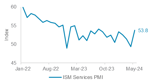 Headline ISM Services PMI rose to the highest since Aug 2023 at 53.8 in May
