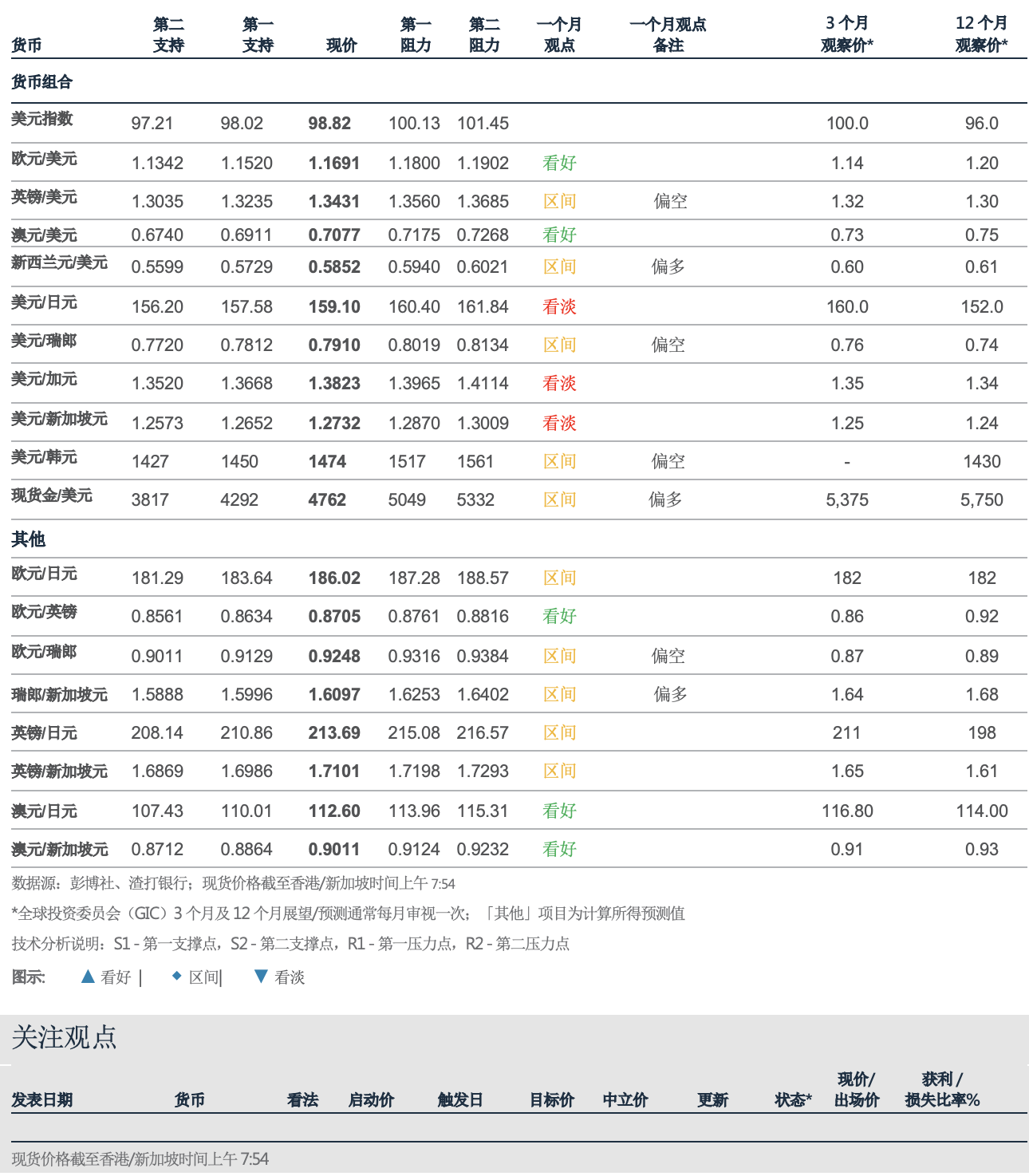 渣打集团内各分行、附属公司及关联公司可根据当地监管要求在全球开展银行业务。意见可能包含直接“买入”、“卖出”、“持有”或其他意见。上述意见的投资期取决于当前市况,而且没有限定更新意见的次数。本意见并非独立于渣打集团本身的交易策略或部署。渣打集团及/或其关联公司或其各自人员、董事、员工福利计划或员工,包括参与拟备或发行本文件的人士,可于任何时候,在适用法律及/或法规许可的范围内,买卖本文件提述的任何证券或金融工具,或在任何该等证券或相关投资中有重大利益。因此,渣打集团可能且阁下应假设渣打银行在本文件所提述的一项或多项金融工具中有重大利益。请参阅渣打网站的监管披露部分,以了解更详细的披露,包括过去12个月的意见/建议、利益冲突及免责声明。相关策略师可能拥有本公司/发行人的债务或股票证券的财务权益。所有相关策略师均获新加坡金融管理局或香港金融管理局发牌提供投资建议。未经渣打集团明确的书面同意,本文件不得转发或以其他方式提供予任何其他人士。
