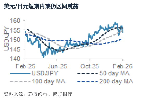 美元兑日元区间波动,首相高市早苗安抚财政担忧:日本首相高市早苗澄清,拟议的食品饮料消费税减免将严格限制在两年内,且政府不会通过发行债券筹集资金。受此消息影响,美元兑日元下跌1%。她补充说,政府目前没有动用外汇特别账户为拟议的减税计划提供资金的计划。日元可能仍将对政府财政政策议程的消息保持敏感。我们预计美元兑日元短期内将在151.5-154.4区间波动。
