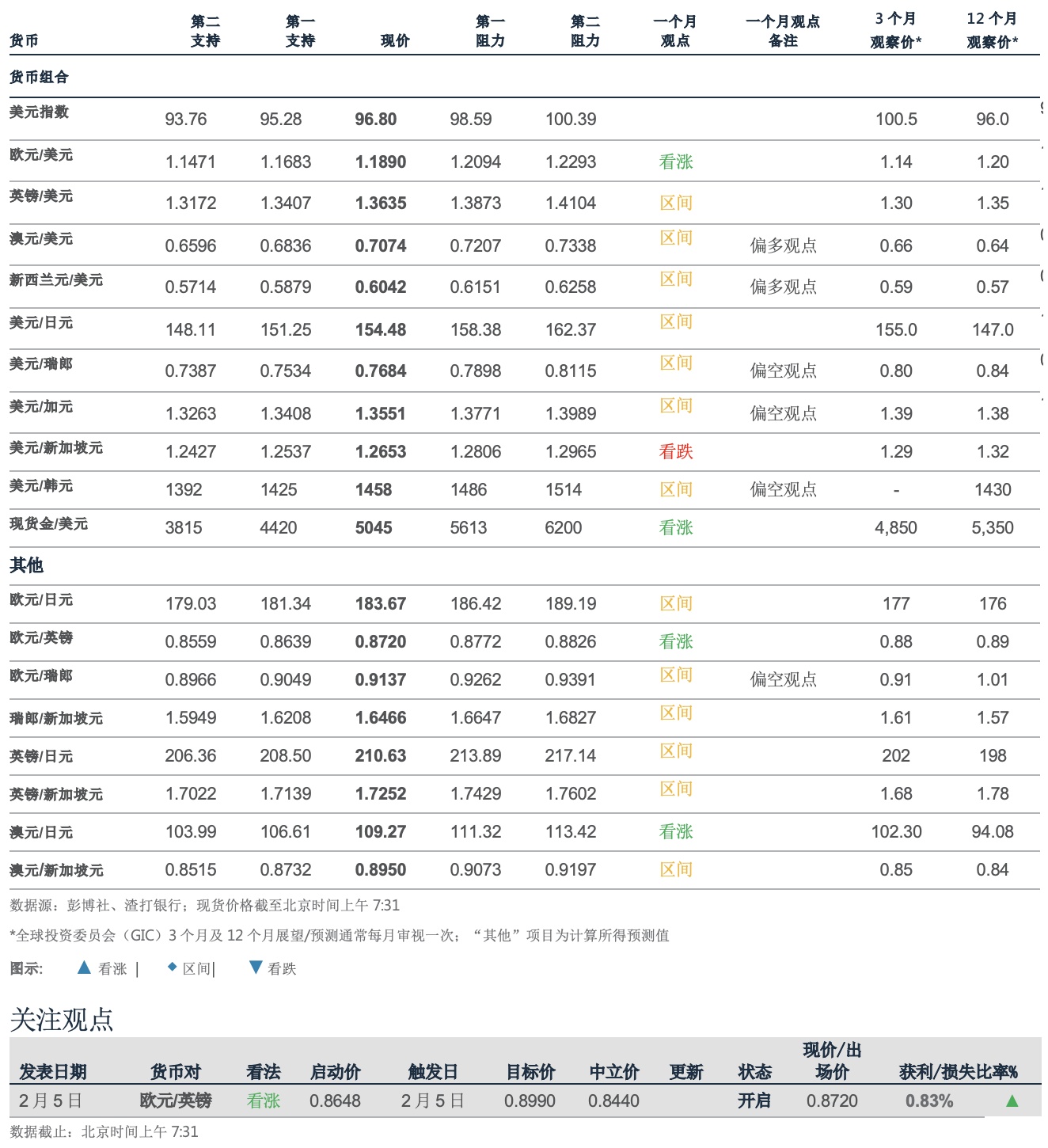 美元走软,受美国零售销售数据疲软影响;1月就业报告成为焦点:美元指数(DXY)变动不大。美国12月零售销售环比持平,低于市场预期的0.4%,而11月环比升0.6%。受恶劣天气、关税影响和持续高企的通胀影响,消费者活动放缓。美国国债收益率各期限均有所下降,其中10年期美债收益率下跌5.9个基点至4.14%。市场焦点转向今日公布的1月非农就业数据。市场普遍预期1月非农就业人数将增加6.5万人,12月增幅为5万人。若数据弱于预期,美元指数可能进一步承压,其短期支撑位在95.6。