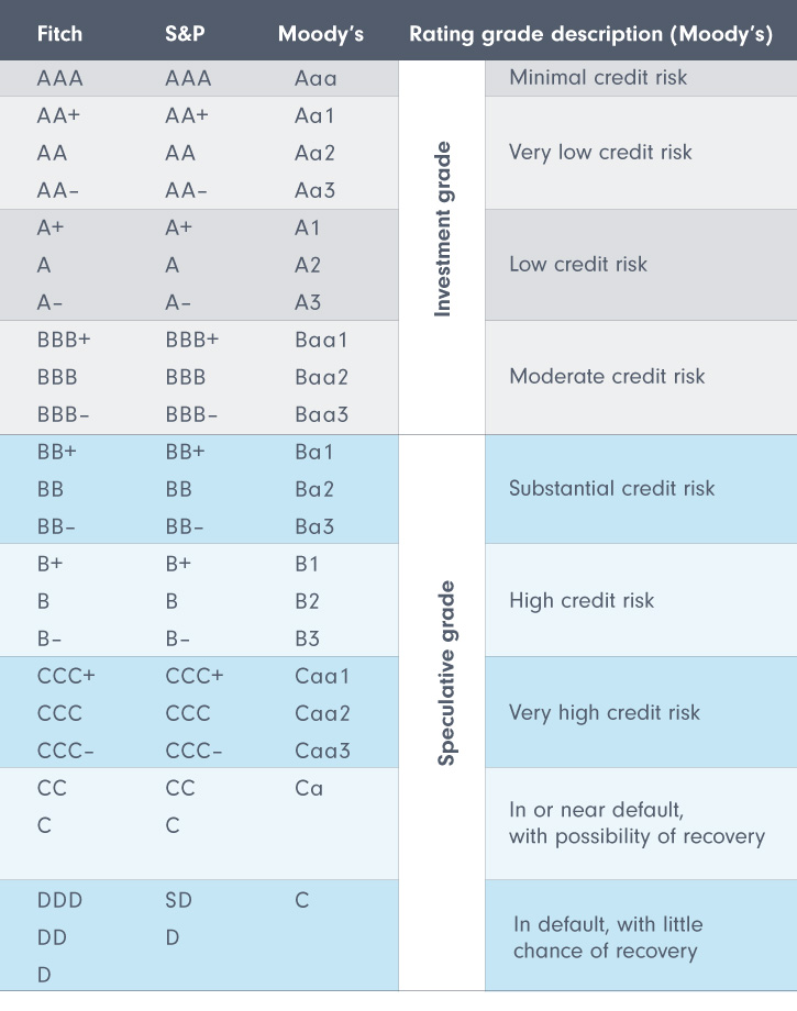 Moody’s rating scale is slightly different from but broadly similar to that of Fitch and S&P.