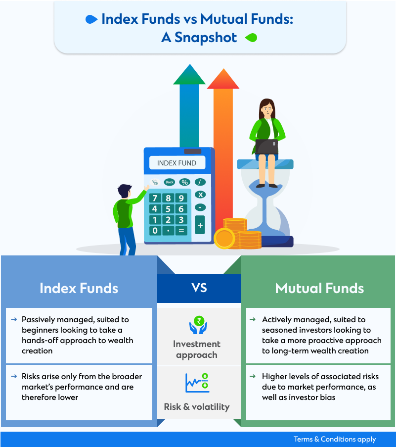 Both index funds and actively managed mutual funds provide one with portfolio diversification. However, just like any other market-linked instrument, they do have a certain degree of risk associated with them as well. The difference lies in the levels of said risk, stemming from varying management approaches.