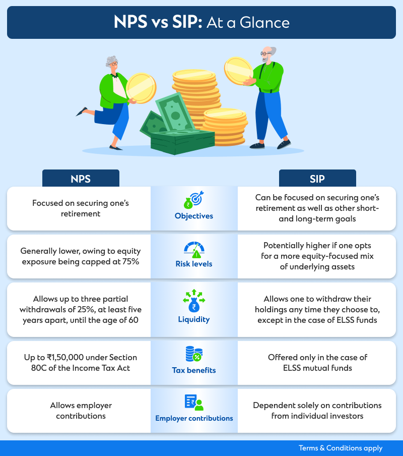 Both NPS and SIPs offer distinct advantages that help one secure their retirement. Picking between the two, however, requires an evaluation of how well each of them aligns with one’s risk appetite, liquidity preferences, and financial goals.