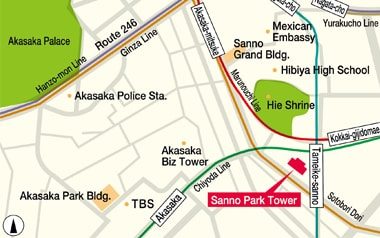 Take the Ginza Line or Nanboku Line to Tameike-sanno Station and cross directly to the Sanno Park Tower 2nd basement via the underground passage, Exit 7.