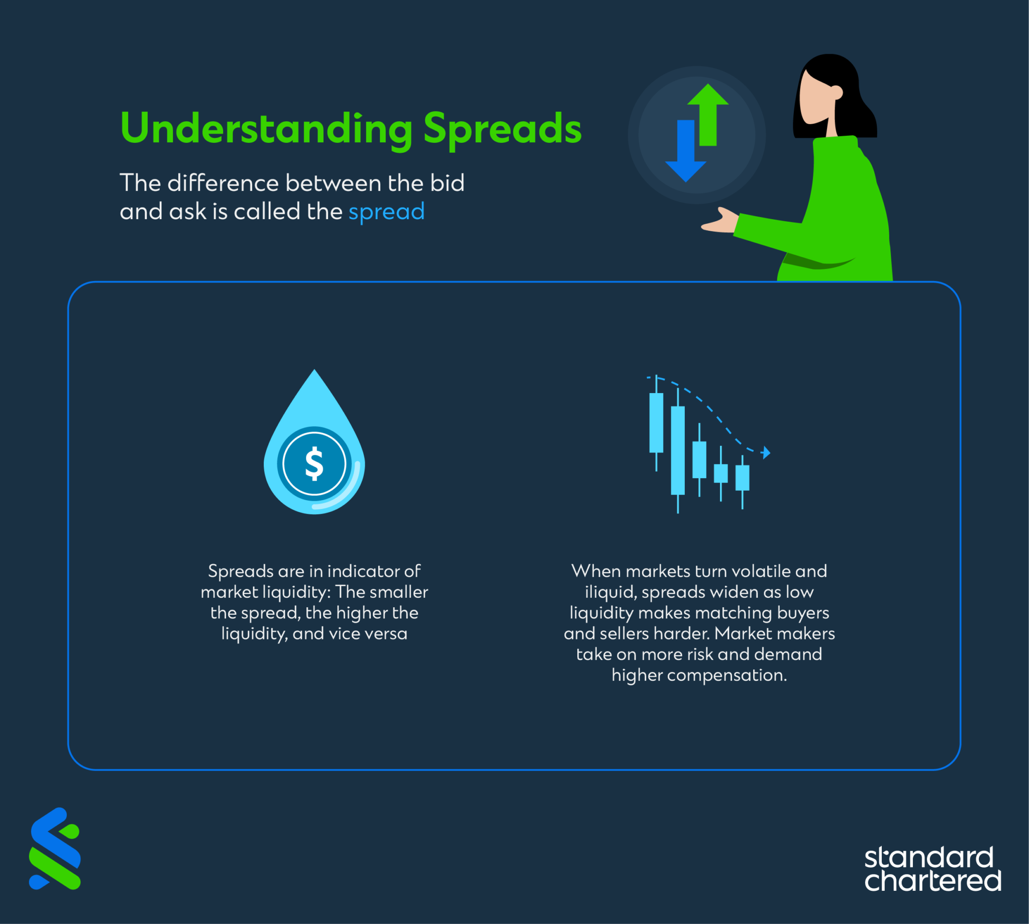 - Spreads are an indicator of market liquidity: the smaller the spread, the higher the liquidity, and vice versa.