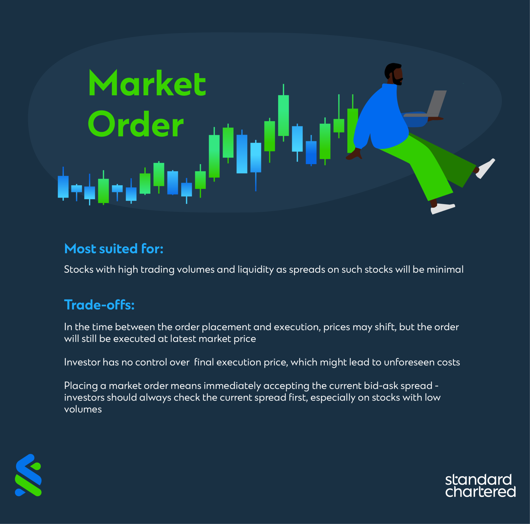 - An order to buy or sell a certain quantity of a stock at the prevailing market price