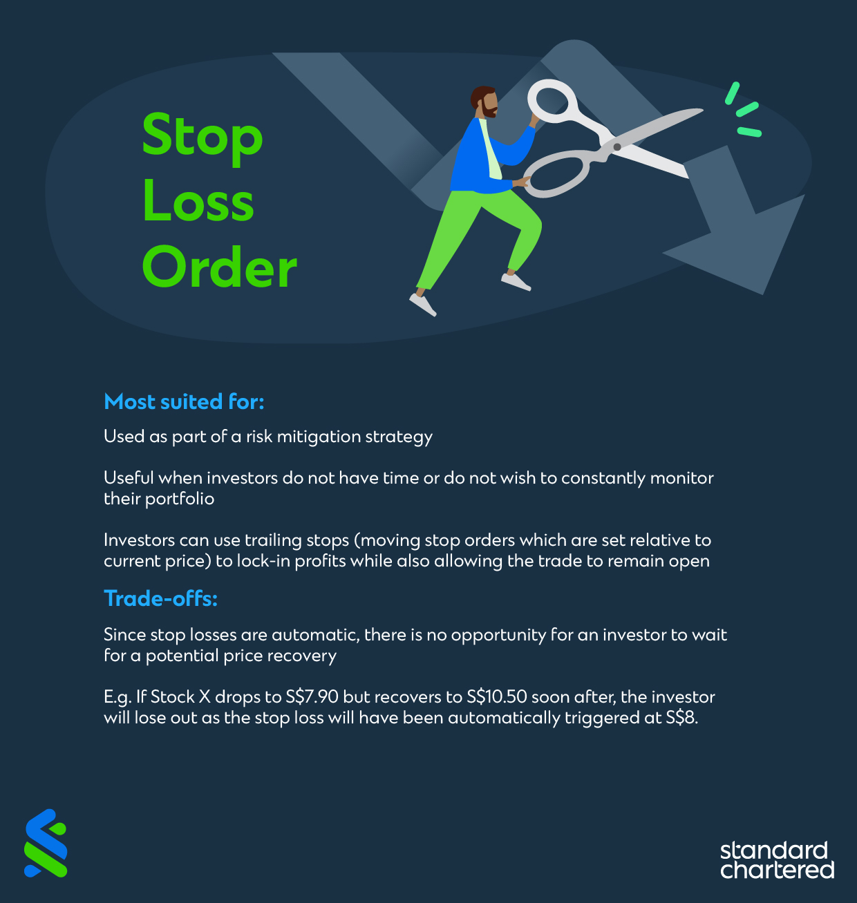 - It is a specific type of limit order used to minimises losses on a stock by automatically selling it once it falls to a certain price